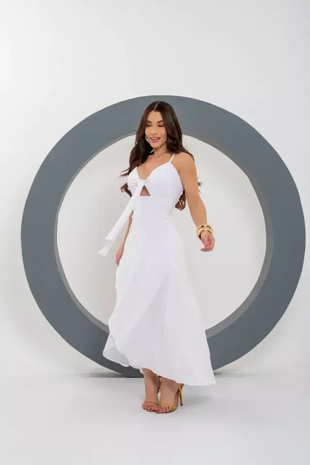 Vestido Longo Sereia de Alça e Laçinho - Crepe Sedinha